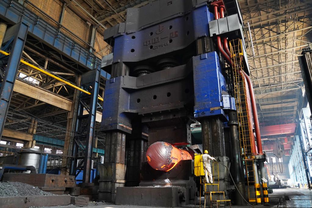 5月初,在中國(guó)一重集團(tuán)有限公司鑄鍛鋼事業(yè)部水壓機(jī)鍛造廠,廠長(zhǎng)許四海正和工人操作萬噸水壓機(jī),一個(gè)紅彤彤的鋼坯在水壓機(jī)錘煉下,慢慢變成了大型工件。