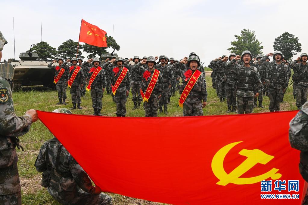 陸軍第83集團軍某旅“紅一連”黨支部為新戰(zhàn)士舉行授槍儀式(7月4日攝)。新華社記者 張永進 攝