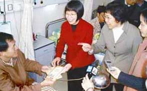 王兆國(guó)為獲獎(jiǎng)代表頒發(fā)獎(jiǎng)?wù)潞妥C書(shū)