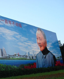 廣場(chǎng)一端的巨幅畫像上,改革開放的總設(shè)計(jì)師鄧小平身著淺灰色中山裝,堅(jiān)毅地凝視著前方。畫面左上方寫著:“堅(jiān)持黨的基本路線一百年不動(dòng)搖?!?/a>