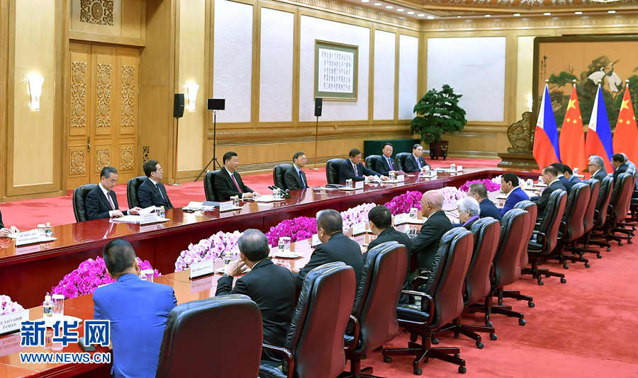4月25日,國(guó)家主席習(xí)近平在北京人民大會(huì)堂會(huì)見(jiàn)菲律賓總統(tǒng)杜特爾特。 新華社記者 李濤 攝
