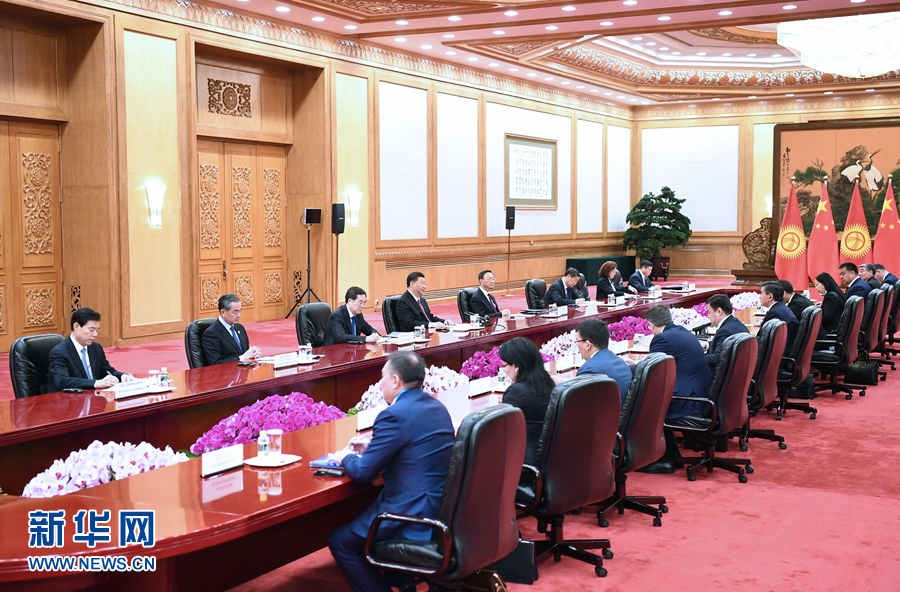 4月28日,國家主席習(xí)近平在北京人民大會堂會見吉爾吉斯斯坦總統(tǒng)熱恩別科夫。 新華社記者 謝環(huán)馳 攝