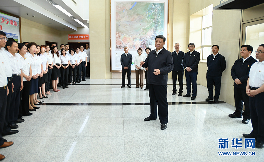 7月15日至16日,中共中央總書記、國家主席、中央軍委主席習(xí)近平在內(nèi)蒙古考察并指導(dǎo)開展“不忘初心、牢記使命”主題教育。這是16日,習(xí)近平在內(nèi)蒙古自治區(qū)自然資源廳調(diào)研指導(dǎo)開展“不忘初心、牢記使命”主題教育。 新華社記者 謝環(huán)馳 攝