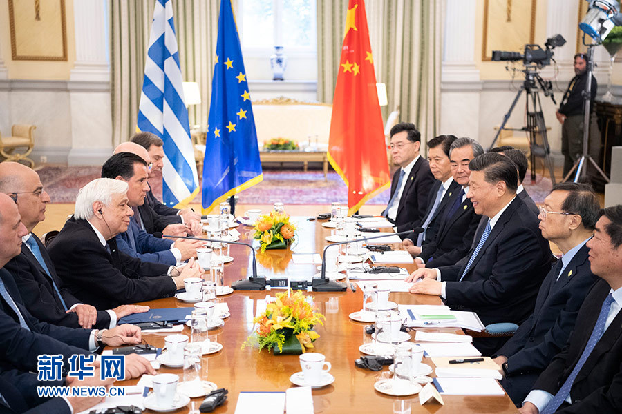 當地時間11月11日,國家主席習近平在雅典同希臘總統(tǒng)帕夫洛普洛斯會談。 新華社記者 姚大偉 攝