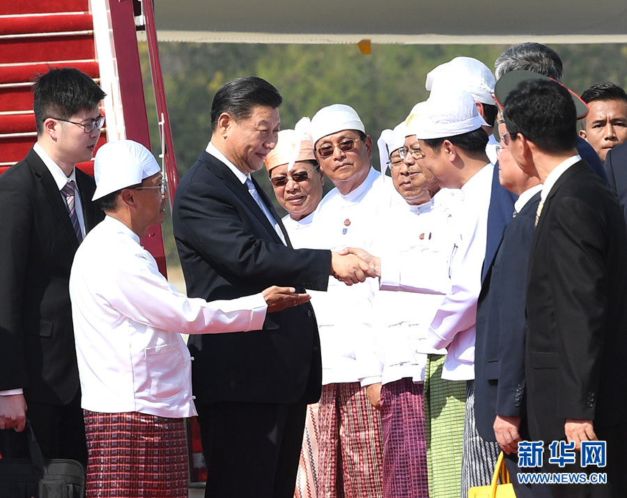 當(dāng)?shù)貢r(shí)間1月17日下午,國(guó)家主席習(xí)近平乘專機(jī)抵達(dá)內(nèi)比都國(guó)際機(jī)場(chǎng),開(kāi)始對(duì)緬甸聯(lián)邦共和國(guó)進(jìn)行國(guó)事訪問(wèn)。習(xí)近平抵達(dá)時(shí),緬甸第一副總統(tǒng)敏瑞率多名內(nèi)閣部長(zhǎng)在舷梯旁熱情迎接。 新華社記者 鞠鵬 攝