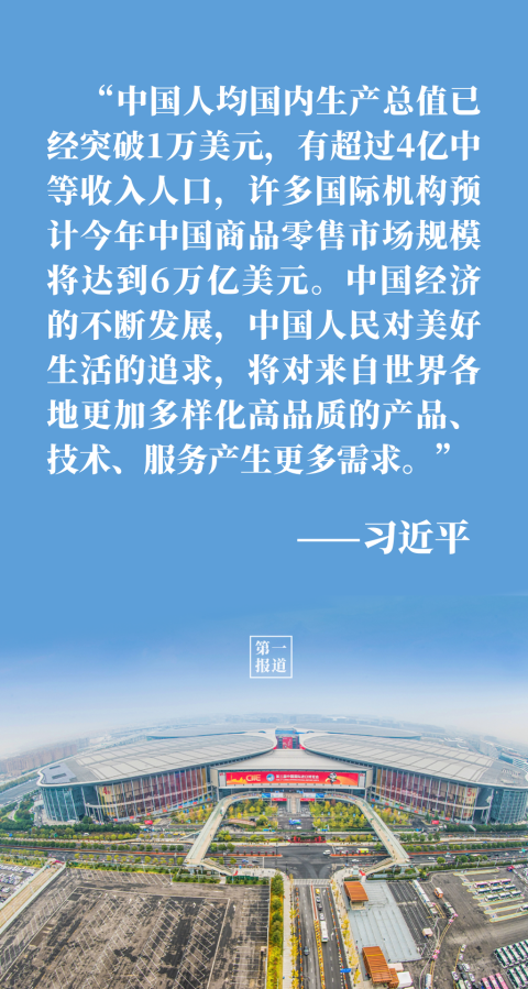 “中國(guó)的發(fā)展離不開(kāi)世界,世界的繁榮也需要中國(guó)?!闭劦街袊?guó)大市場(chǎng)蘊(yùn)藏的大機(jī)遇,習(xí)主席用事實(shí)和數(shù)據(jù)說(shuō)話: