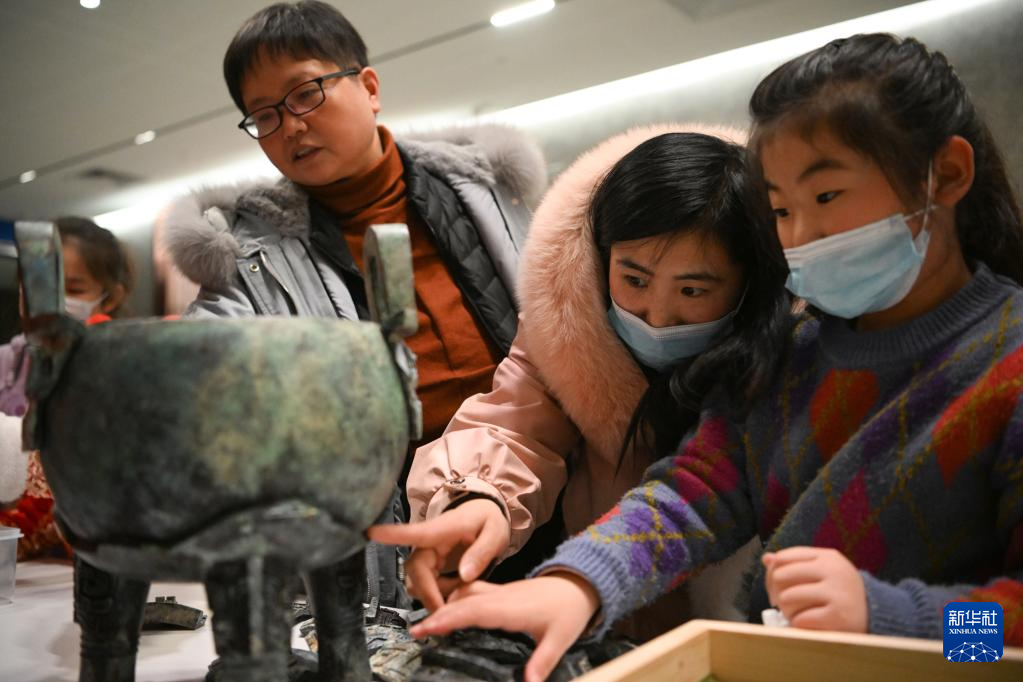 2月4日,小朋友在中国文字博物馆体验文物拼拼乐。