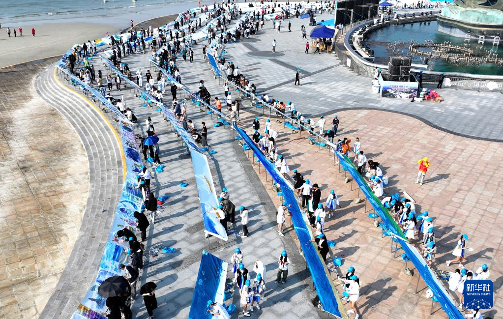 这是11月28日拍摄的“十里银滩千人共绘”现场(无人机照片)。