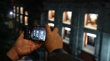 12月3日在“互利天下:广东外贸一千年”展览上拍摄的元代青花人物图玉壶春瓶。
