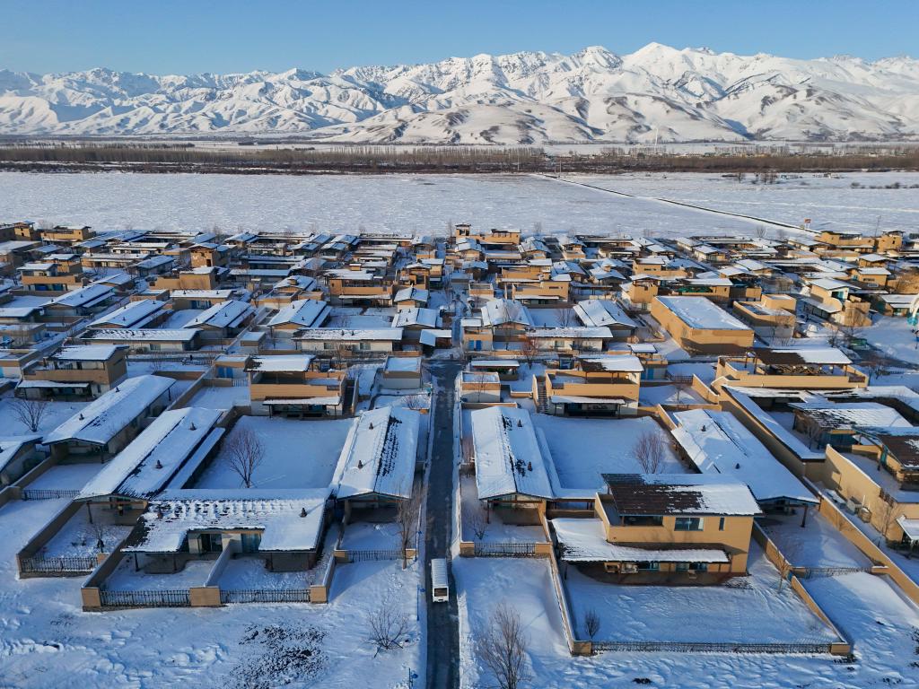 1月24日拍摄的那拉提哈茵赛滑雪度假区旁的旅游民俗村(无人机照片)。新华社记者 胡虎虎 摄