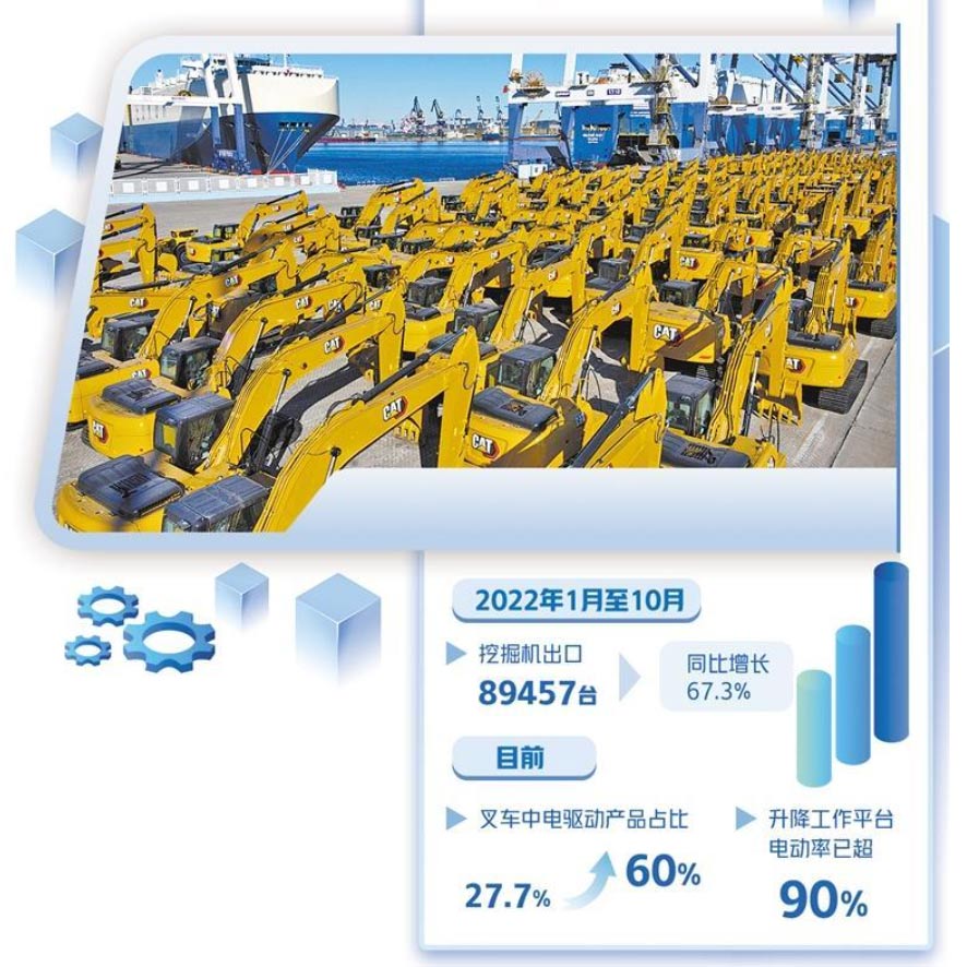 2022年以来,工程机械行业企业未雨绸缪,抢抓排放标准切换的风口,积极推进转型升级,在高端与重大设备研制、电动化与智能化突破,以及国际竞争力提升上取得显著成果。