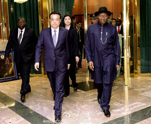 新華網(wǎng)北京5月8日電據(jù)新華社“新國際”微博報道,李克強7日與尼日利亞總統(tǒng)喬納森會談。