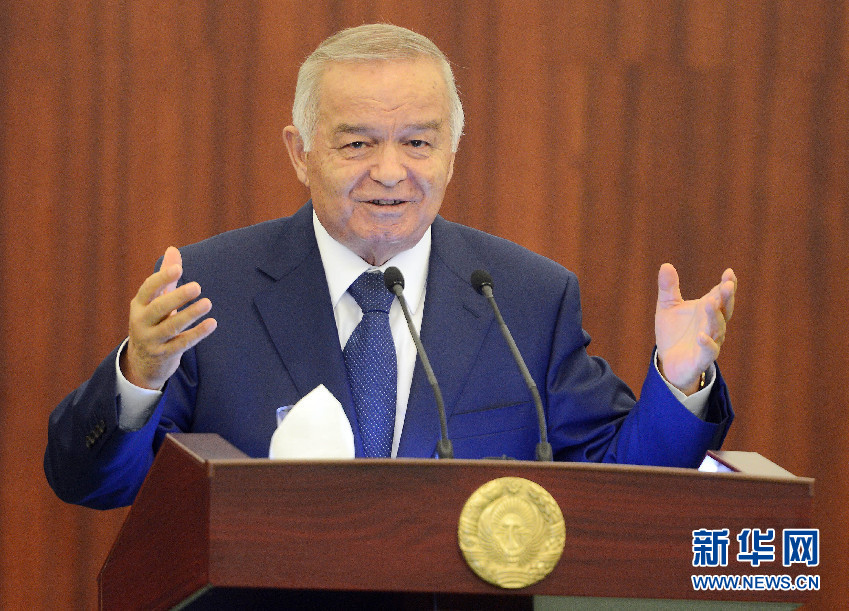 ????6月6日,在烏茲別克斯坦首都塔什干國際會議宮,烏茲別克斯坦總統(tǒng)卡里莫夫在講話。(沙達提 攝)