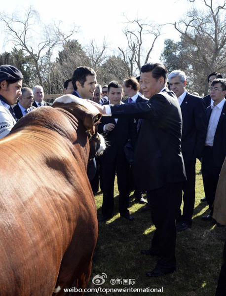 ????新華網(wǎng)北京7月20日電 據(jù)新華社“新國際”微博報道,天下事,農為先。正在世界“糧倉肉庫”阿根廷訪問的國家主席習近平19日來到布宜諾斯艾利斯郊區(qū)的共和國莊園,了解農牧業(yè)發(fā)展情況,感受阿根廷傳統(tǒng)高喬人文化。該莊園為阿根廷先進農牧技術和文化代表。