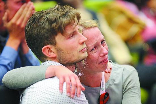 7月20日,在澳大利亞墨爾本,兩名與會代表在大會開幕式上相擁而泣。當(dāng)日,第20屆國際艾滋病大會在澳大利亞第二大城市墨爾本開幕,一萬多名與會者在開幕式上集體悼念6名在馬航MH17航班墜毀事件中遇難的抗艾專家。新華社記者 徐儼儼攝