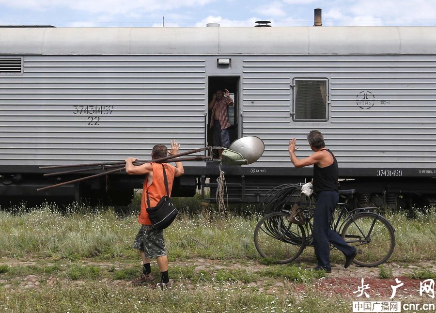 當(dāng)?shù)貢r(shí)間2014年7月20日,烏克蘭頓涅茨克Torez,馬航墜機(jī)遇難乘客遺體被裝上列車?yán)洳剀噹麑⒈贿\(yùn)走。載有部分遺體的火車從距空難現(xiàn)場不遠(yuǎn)的烏克蘭托列茲市出發(fā),前往頓涅茨克市?;疖囯x站前,身處空難現(xiàn)場的歐洲安全與合作組織(歐安組織)代表檢查了運(yùn)載遺體的5節(jié)冷藏車廂。