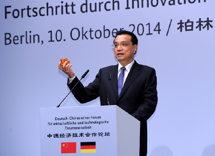 與默克爾共同出席第七屆中德經(jīng)濟技術(shù)合作論壇時,李克強在致辭最后提起,這次默克爾總理陪他逛了當?shù)匾患页?,買了兩張明信片送給他的家人,而他也帶來一份禮物,是中國天津中德職業(yè)技術(shù)學院學生的作品,學生們希望他在公開的場合把這個禮物送給默克爾,以表達對中德制造業(yè)深度融合的期待。