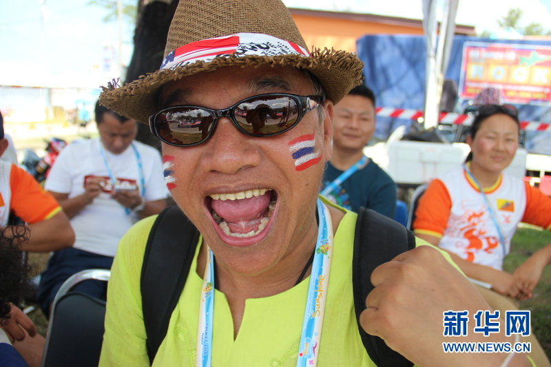 ??? 11月16日,泰國民眾為泰國運(yùn)動(dòng)健兒加油。中國體育代表團(tuán)16日在泰國普吉舉行的第四屆亞洲沙灘運(yùn)動(dòng)會(huì)上勇奪2枚金牌和2枚銅牌。當(dāng)天比賽全部結(jié)束時(shí),中國隊(duì)以3金2銀5銅的成績暫列獎(jiǎng)牌榜第五,東道主泰國隊(duì)以9金11銀12銅的成績暫列金牌榜和獎(jiǎng)牌榜第一。新華社發(fā)(塔納攝)