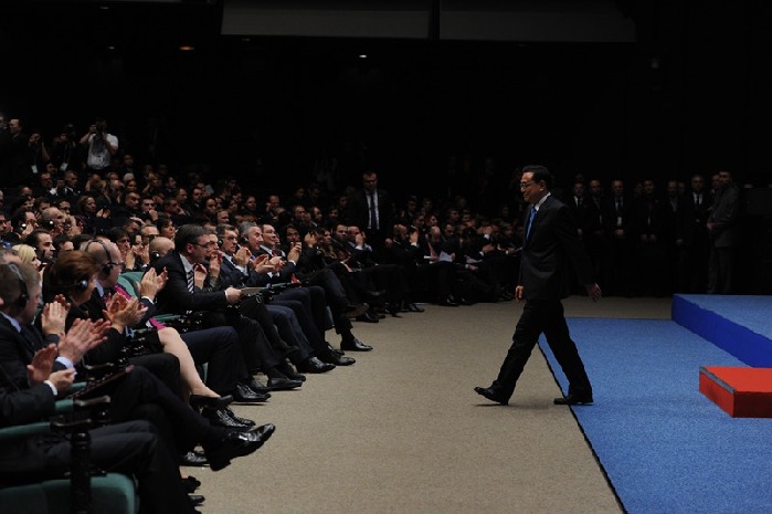 李克強(qiáng)出席中國(guó)—中東歐國(guó)家第四屆經(jīng)貿(mào)論壇并致辭。 新華社 饒愛民 攝