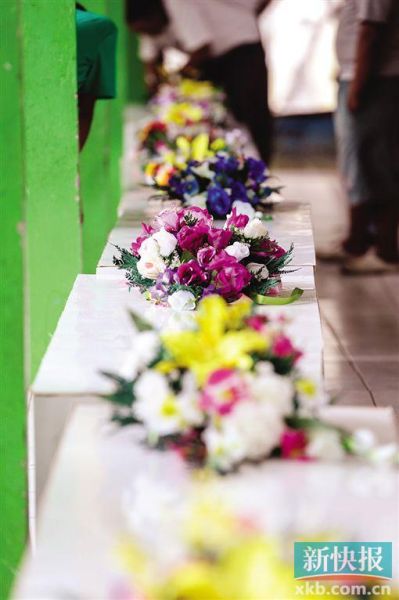 當(dāng)電視播放當(dāng)天軍人抬著2具遺體棺材的畫面時(shí),餐廳里瞬間安靜下來,沒有了刀叉的碰撞聲,人們齊齊把眼光聚集在電視上,那令人心痛悲傷的畫面:蓋著鮮花的棺材,被早在泗水守候的兩隊(duì)軍人莊嚴(yán)而沉重地慢慢抬下飛機(jī),然后輕輕地放在軍車上,在警車的開路下,徐徐地向泗水醫(yī)院駛?cè)ァ?/p>
