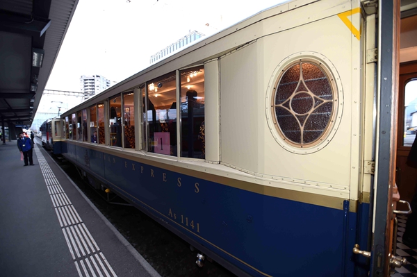 前往達(dá)沃斯通常乘坐的紅色窄軌小火車很有特色。克強(qiáng)總理此次乘坐的專列是瑞方鐵路公司專門用于租借的,充當(dāng)過(guò)不少國(guó)家領(lǐng)導(dǎo)人的專列,顏色不同于普通小火車的紅色,而是藍(lán)白配色的。
