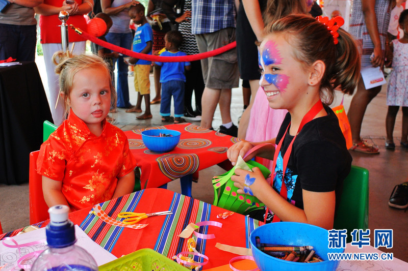 南非小朋友體驗中國文化。新華社發(fā)(郭興華攝)