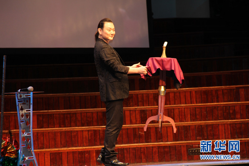 ??????? 2月25日,由中國國務(wù)院僑辦和中國海外交流協(xié)會聯(lián)合主辦的“文化中國·四海同春”在悉尼舉辦大洋洲團的首場演出,歌手成方圓、中國好聲音學(xué)員李維、周深等國內(nèi)知名表演者和中澳藝術(shù)團體為當?shù)厝A僑華人送來新春祝福。圖為中國雜技團著名青年魔術(shù)師李寧表演魔術(shù)。新華社記者趙小娜攝