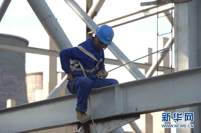 烏茲別克斯坦安格連(市)電廠主廠房鋼結(jié)構(gòu)施工現(xiàn)場。新華網(wǎng)發(fā) 記者沙達提 攝