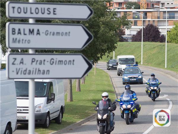 圖為8月1日,在法國圖盧茲近郊,載有疑似馬航MH370航班殘骸的白色貨車駛?cè)牒娇占夹g分析機構(gòu)。新華社發(fā)