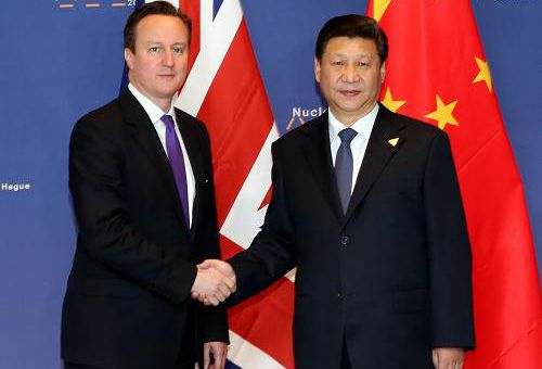 資料圖片:2014年3月25日,中國(guó)國(guó)家主席習(xí)近平在荷蘭會(huì)見英國(guó)首相卡梅倫。