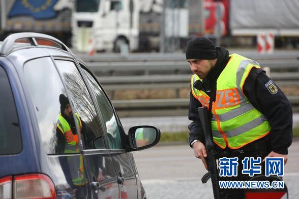 在比利時東部靠近德國亞琛的邊界,德國警方設(shè)置了路障,檢查過往車輛。記者在高速公路檢查站看到,兩名德國特警把守兩邊,所有車輛逐一通過。需要進一步檢查的車輛按指揮進入特定區(qū)域,德國警方要求被檢車輛司機出示證件,并對汽車內(nèi)部進行仔細(xì)翻查。檢查站中??苛耍保岸噍v各型警車,值勤警察荷槍實彈,檢查站旁還有一架警方直升機。