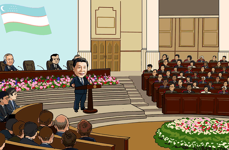6月22日,正在烏茲別克斯坦訪問的國家主席習近平在塔什干烏茲別克斯坦最高會議立法院發(fā)表題為《攜手共創(chuàng)絲綢之路新輝煌》的重要演講,提出構建互利合作網(wǎng)絡、共創(chuàng)新型合作模式、打造多元合作平臺、推進重點領域項目的新主張,為推動“一帶一路”向更高水平、更廣空間邁進指明了方向。當天,習主席和卡里莫夫總統(tǒng)在塔什干共同出席“安格連-帕普”鐵路隧道的通車視頻連線活動。