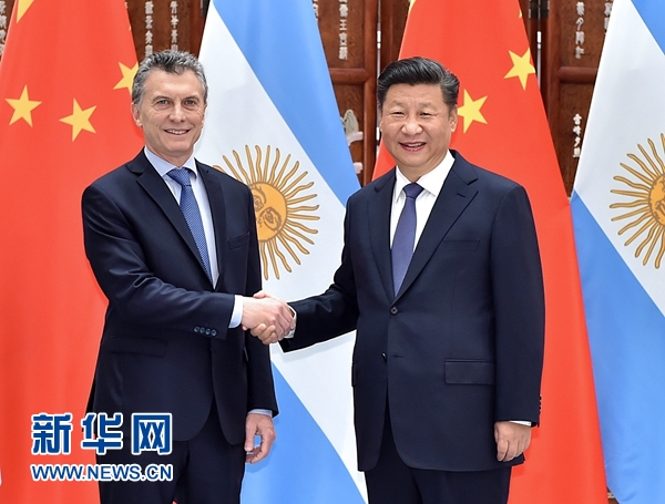 9月3日,國家主席習(xí)近平在杭州會見前來出席二十國集團(tuán)領(lǐng)導(dǎo)人杭州峰會的阿根廷總統(tǒng)馬克里。 新華社記者 李濤 攝