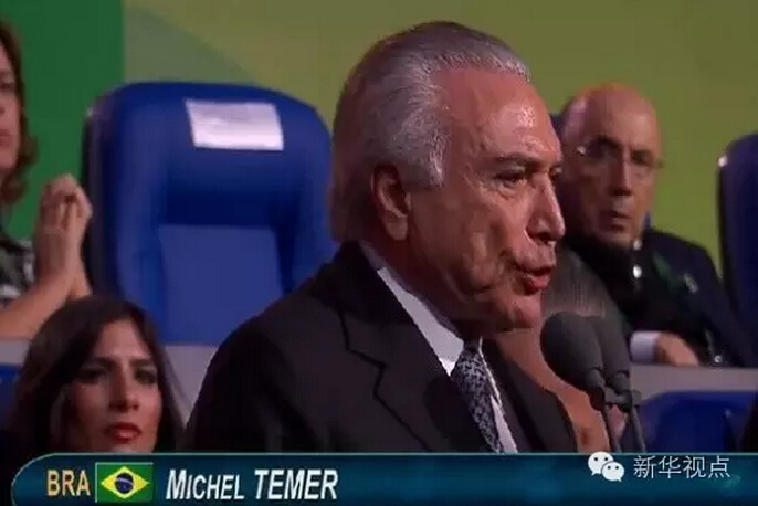 ??? 值得一提的是,出席杭州峰會的特梅爾,奧運(yùn)會時(shí)的身份還是代總統(tǒng),當(dāng)?shù)貢r(shí)間8月31日,特梅爾正式就任巴西總統(tǒng),杭州峰會成為他就職后出席的首個(gè)國際會議。 里約奧運(yùn)會開幕式上的特梅爾↓