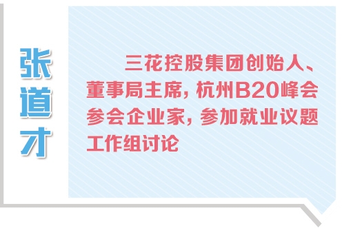 此次,三花控股集團董事局主席張道才入選B20峰會就業(yè)議題組,并提出“創(chuàng)新就業(yè)”議題。他的創(chuàng)新就業(yè)觀包括兩方面:以科技創(chuàng)新促進企業(yè)升級,創(chuàng)造更高質(zhì)量、更多數(shù)量的就業(yè)崗位;以培訓(xùn)教育促進員工專業(yè)技能、文化素質(zhì)的提升,適應(yīng)更好、更多工作崗位的需要。