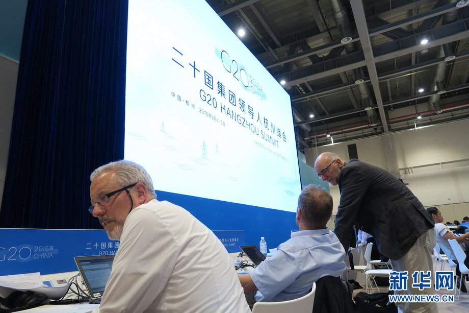 二十國集團工商峰會(B20)于9月3日至4日在杭州舉辦。作為G20機制的重要配套活動,B20是各國工商界參與全球經(jīng)濟治理和推動世界經(jīng)濟增長的重要平臺。圖為工商峰會開幕當(dāng)天,新聞中心內(nèi)記者忙碌的身影。新華網(wǎng) 陳競超 攝