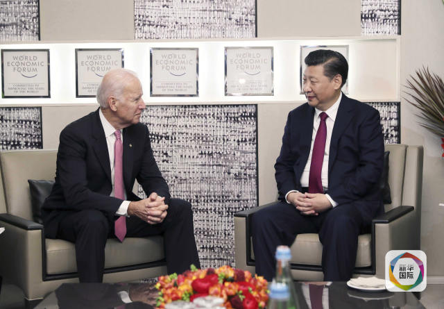 1月17日,國家主席習近平在瑞士達沃斯會見美國副總統(tǒng)拜登。(新華社記者 蘭紅光 攝)