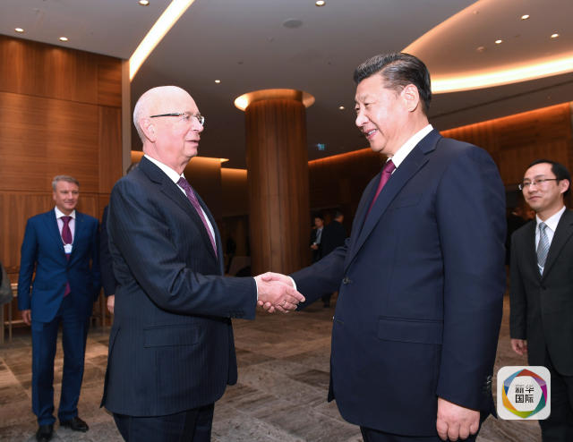 1月17日,國家主席習近平在瑞士達沃斯會見世界經(jīng)濟論壇主席施瓦布。(新華社記者 饒愛民 攝)