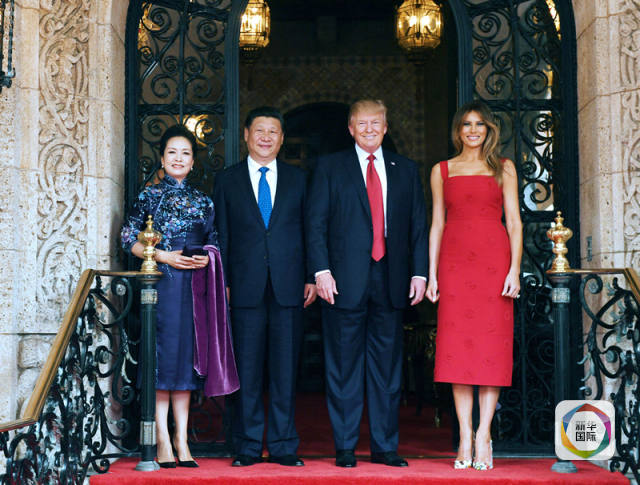 當(dāng)?shù)貢r間4月6日,國家主席習(xí)近平在美國佛羅里達(dá)州海湖莊園同美國總統(tǒng)特朗普舉行中美元首會晤。這是習(xí)近平和夫人彭麗媛同特朗普和夫人梅拉尼婭合影留念。(新華社記者饒愛民攝)
