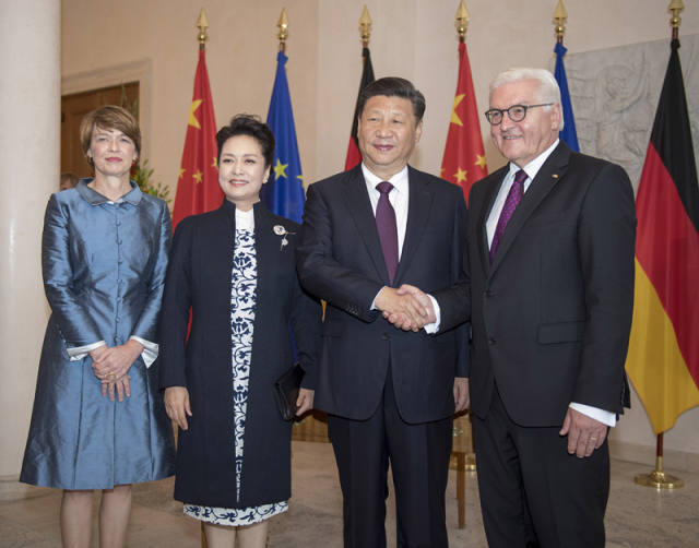 “我這次訪問德國(guó)的一個(gè)重要任務(wù)就是同施泰因邁爾總統(tǒng)、默克爾總理等德國(guó)領(lǐng)導(dǎo)人就新形勢(shì)下如何抓住機(jī)遇、更好統(tǒng)籌推進(jìn)中德全方位戰(zhàn)略伙伴關(guān)系深入交換意見,推動(dòng)中德關(guān)系在高水平上得到更大發(fā)展?!绷?xí)近平主席在4日發(fā)表于德國(guó)主流媒體的一篇題為《為了一個(gè)更加美好的世界》的署名文章中這樣說道。