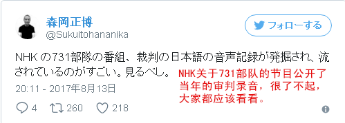 節(jié)目播出以后,在日本引起了強烈反響。許多正義的日本網(wǎng)友義憤填膺,紛紛發(fā)出聲音譴責(zé)當(dāng)年日軍的暴行。