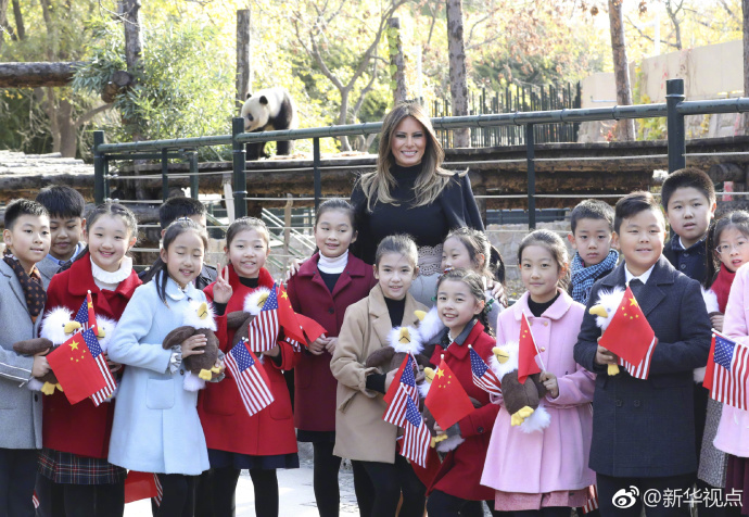11月10日上午,美國總統(tǒng)特朗普的夫人梅拉尼婭參觀北京動物園熊貓館。來看現(xiàn)場照片!(記者龐興雷、王慧慧)(新華社“新華視點”微博報道)