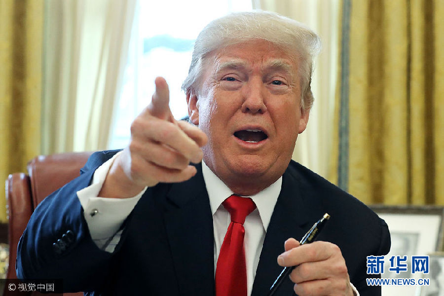 當?shù)貢r間22日,美國華盛頓,美國總統(tǒng)特朗普在白宮的橢圓形辦公室簽署1.5萬億美元稅改法案,此乃美國最近逾30年來最大規(guī)模減稅行動。(圖片來源:視覺中國)