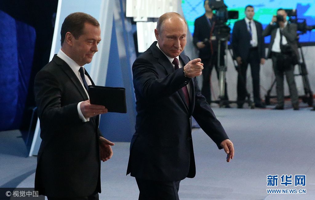 當(dāng)?shù)貢r間2017年12月23日,俄羅斯莫斯科,俄羅斯總統(tǒng)普京出席第17次統(tǒng)一俄羅斯黨大會。(圖片來源:視覺中國)