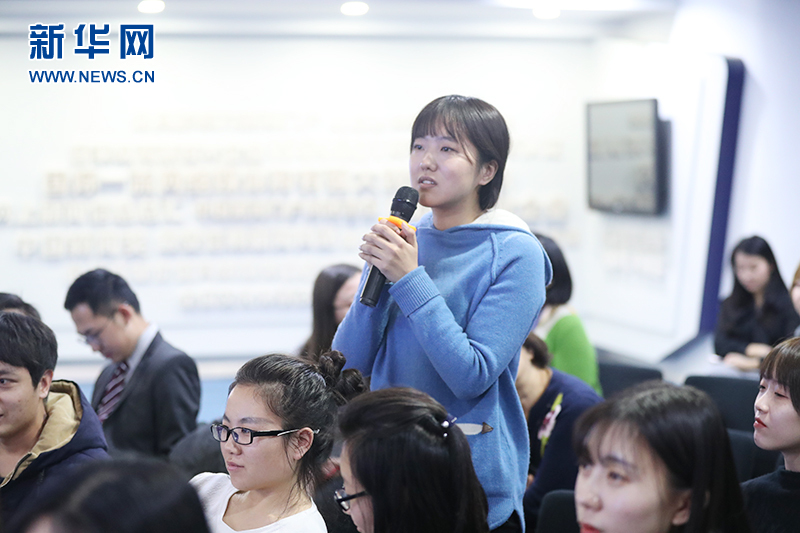 12月26日,新華網(wǎng)第八屆“縱論天下”國(guó)際問(wèn)題研討會(huì)在北京舉行。圖為中國(guó)傳媒大學(xué)學(xué)生在提問(wèn)。新華網(wǎng) 郭小天 攝