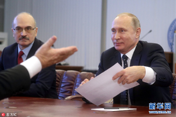 當?shù)貢r間27日,俄羅斯莫斯科,俄羅斯總統(tǒng)普京親自向俄中央選舉委員會遞交參加2018年總統(tǒng)大選的文件。俄羅斯將于2018年3月18日舉行總統(tǒng)大選。