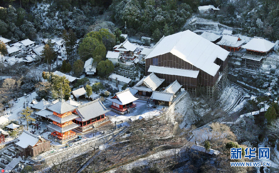 1月25日,大雪過后,日本京都一片銀裝素裹,金閣寺、清水寺披上“雪衣”。(圖片來源:東方IC)