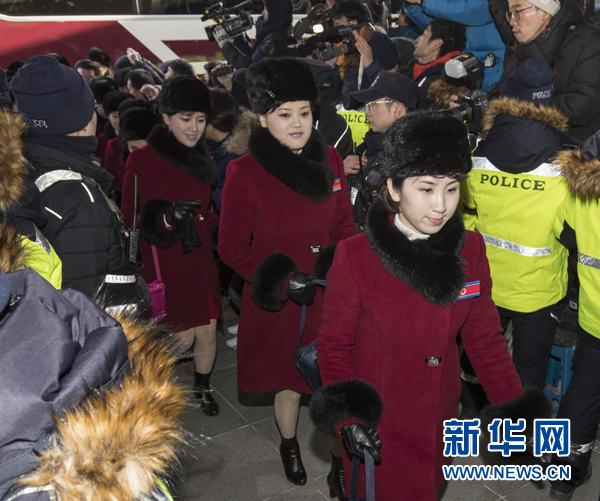 2月7日,朝鮮拉拉隊成員乘車到達韓國江原道麟蹄郡。當(dāng)日,參加平昌冬奧會的朝鮮拉拉隊、跆拳道示范團、記者團和民族奧林匹克委員會官員等一行280人經(jīng)由京義線陸路抵達韓國境內(nèi)。新華社發(fā)(李相浩攝)