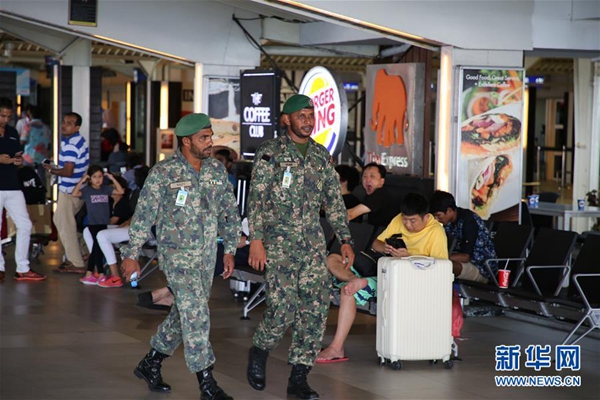 2月7日,軍人在馬爾代夫馬累國(guó)際機(jī)場(chǎng)巡邏。新華社記者 朱瑞卿 攝