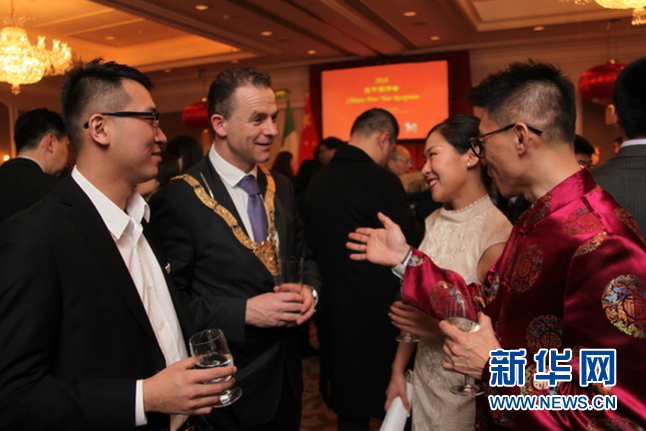 2月8日, 在愛爾蘭首都都柏林, 中愛嘉賓在中國駐愛爾蘭使館舉辦的春節(jié)招待會上交談。新華網(wǎng)發(fā)(張琪攝)
